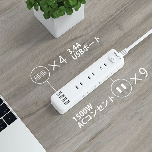 コンセント カバー 延長コード 2m 3m 5m 電源コード コンセントガード ほこりシャッター 壁に溶け込む コンセント タップ 雷ガード 9個口 OAタップ 電源タップ安全 ベビーガード タップ
