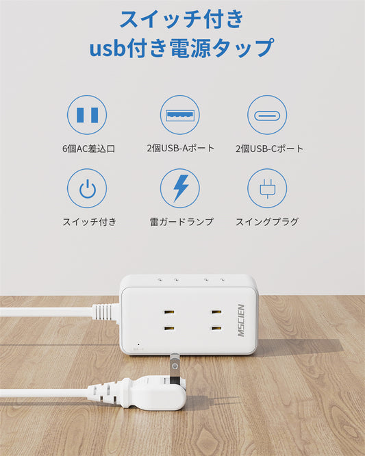 コンセントタップ USBタップ 電源 タップ 電源コード 延長ケーブル 雷ガード 延長コード 2m 6個口 3USB コンセント usb コンセントタップ OAタップ テーブルタップ クリップ