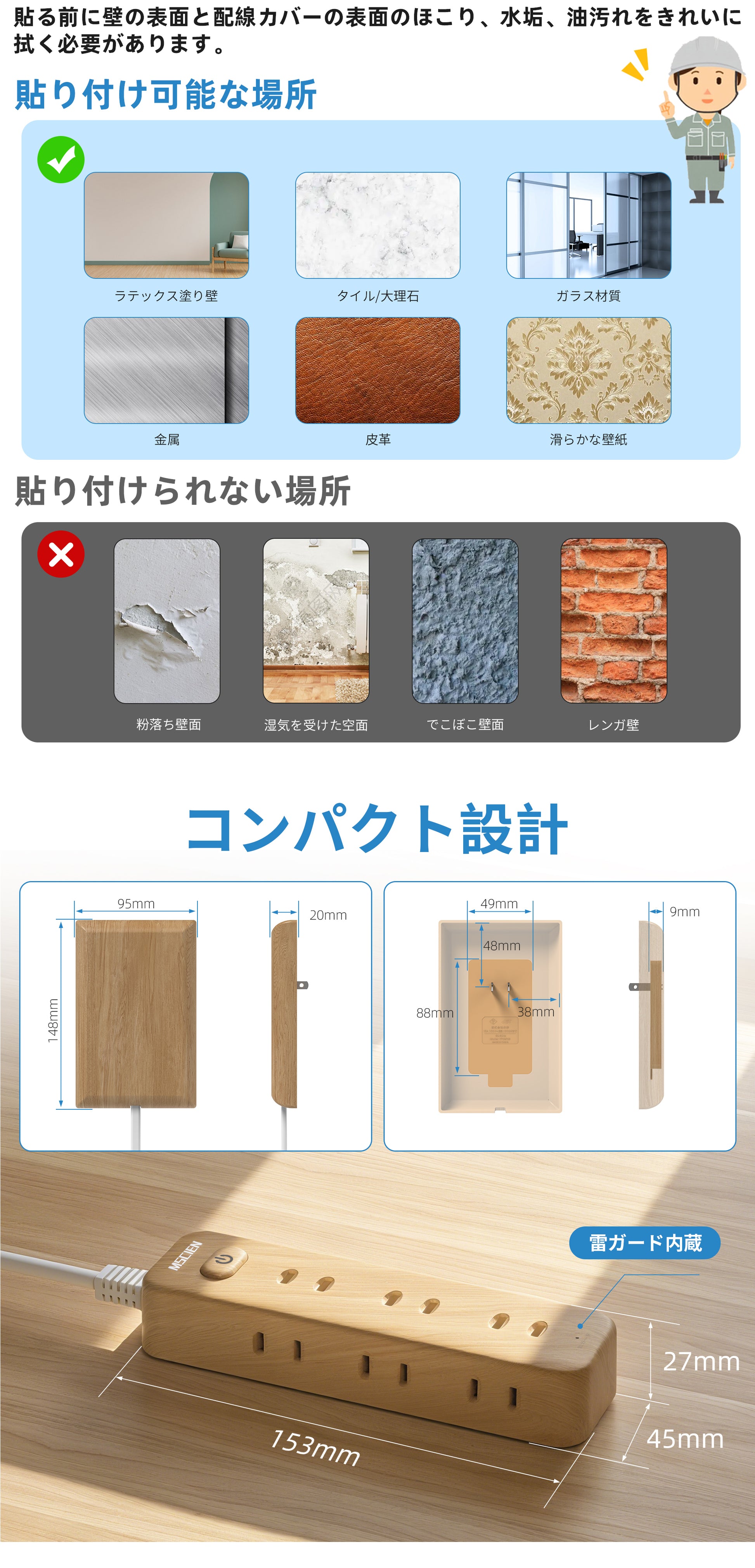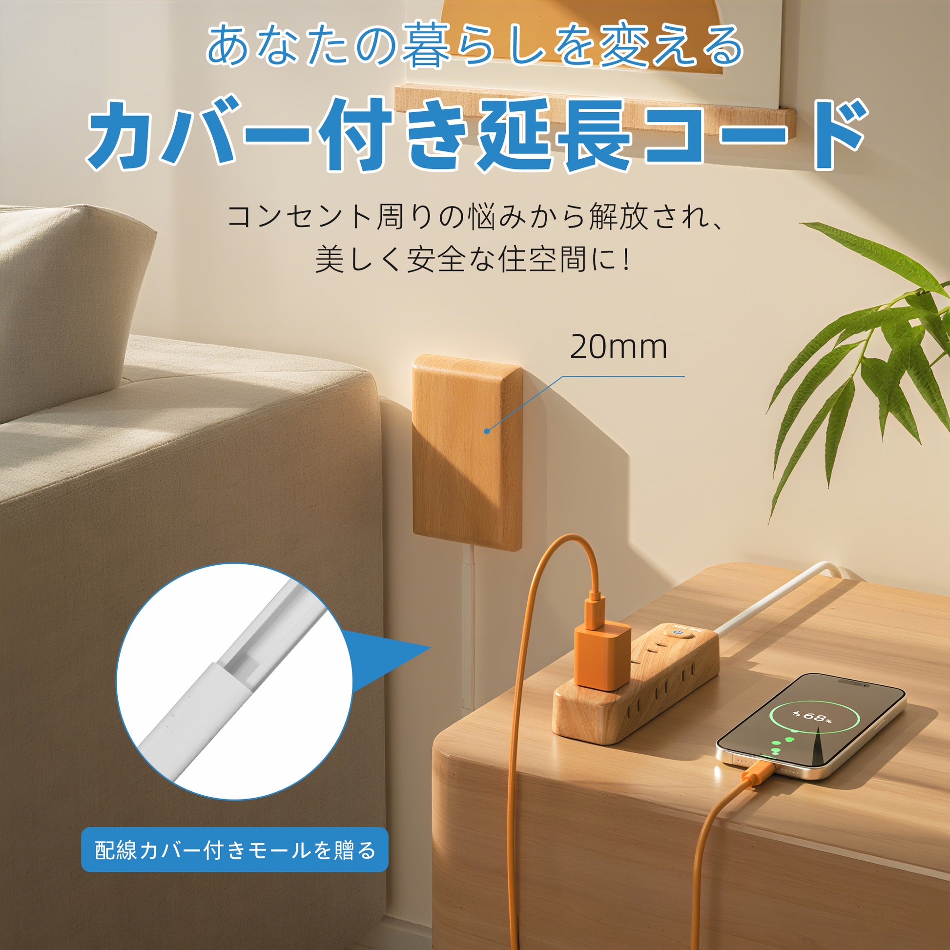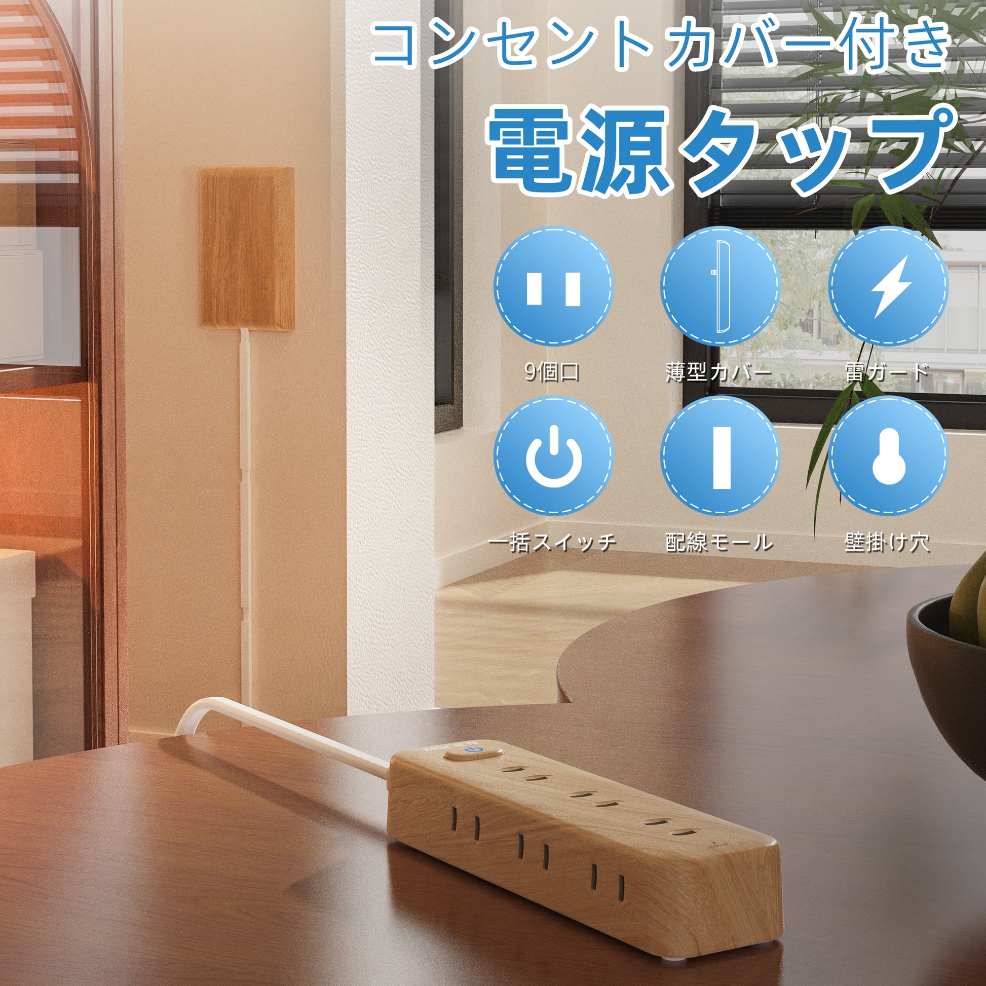 Aki home 延長コード 電源タップ 2m べーびガード馴染む コンセント 電源コード AC9個口タコ足コンセント コンセントタップ おしゃれ ホワイト 木目 送料無料 安全